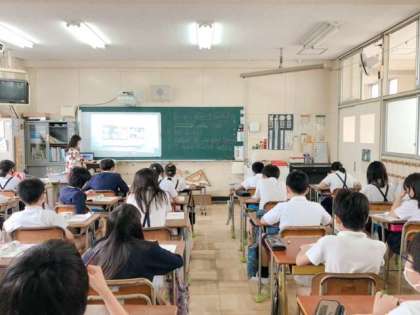 子どもたちはどのスポーツ映像が見たいを英語で説明しました。