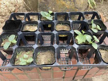 5月中旬に植えたヘチマの種から続々と芽が出てきました(^^)