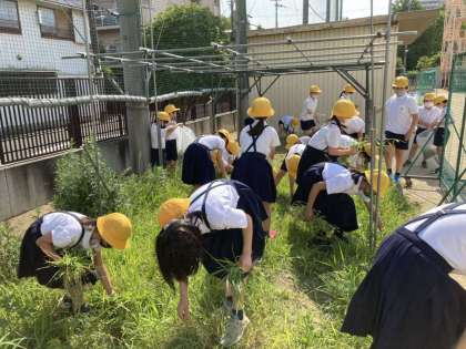 本校では、毎年なかなか芽が出にくいと聞いていたので、予想以上に発芽率が高くて驚いています!!毎日水やりもかかさずに行い、今日は植え替える花壇の雑草抜きも行いました。