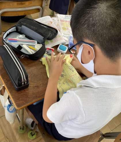 玉結びに続き、練習布を使ってなみぬいや玉どめの練習をしました。