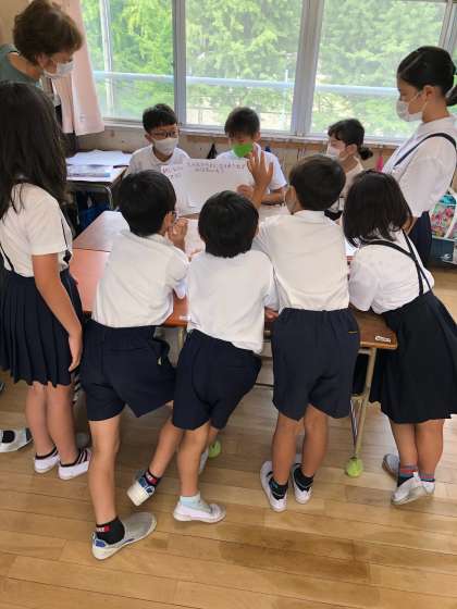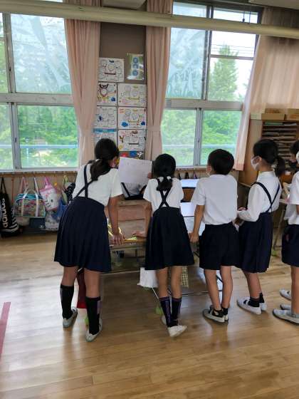 クイズが盛り上がっています。みんないっしょうけんめい考えています。