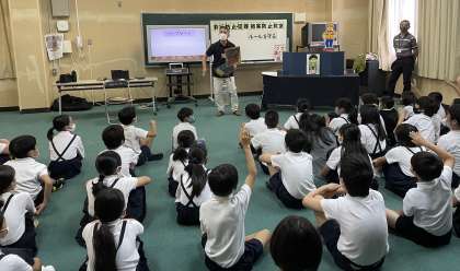 警察署よりゲストティーチャーにお越しいただき、万引きなど非行防止や犯罪被害防止に関して考えを深めました。