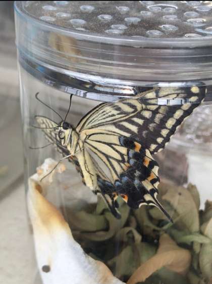 モンシロチョウとアゲハチョウの幼虫を育てました。