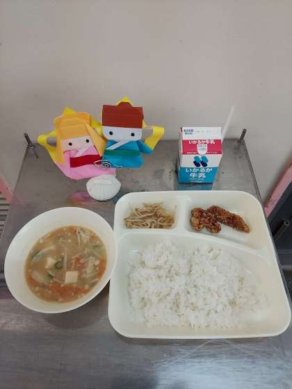 豚肉の香味あげ、みそ汁、もやしのおひたし