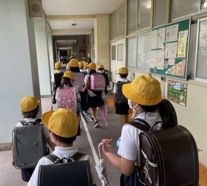 それぞれ班ごとに集団下校を行いました。高学年はしっかりと低学年を誘導するなど、頼れる姿が見られました。
