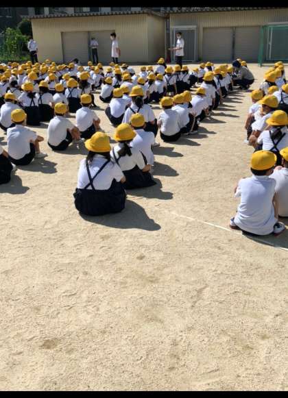 避難完了後、校長先生より、訓練に参加してくださった、区役所や消防署の方、防災担当の方の紹介がありました。