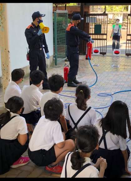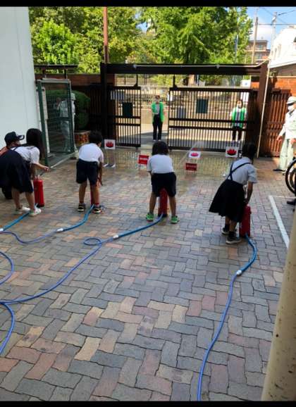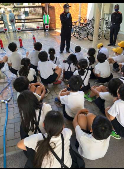 消防士の方々に消火の仕方を聞き、上手に放水することができました。