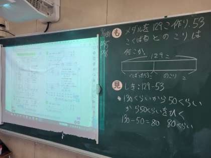 算数の学習では、足し算や引き算の難しい筆算を考えています。2回くり上がったり、くり下がりに0があったり…様々なタイプの問題を、今まで習ったことと照らし合わせながら解いていきます。むずかしい!といいつつも、友だちのやり方を聞いて「なるほど!」となったときの顔は、教師としてとてもうれしいものです。