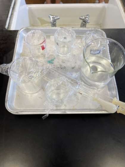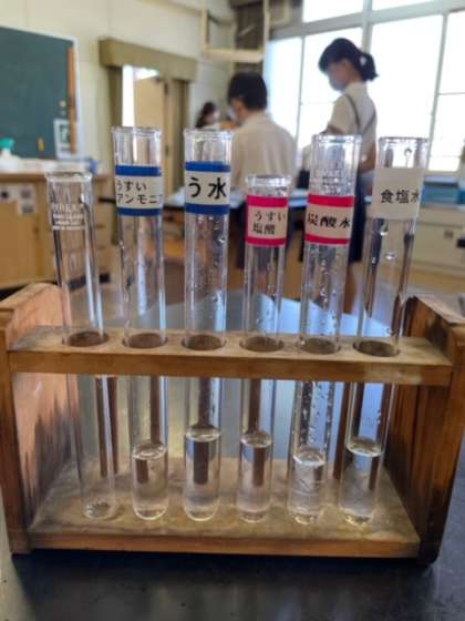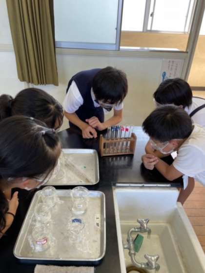 6年生では危険な薬品も使用するため、器具の使用方法や実験方法をしっかりと確認し、少しドキドキしながら実験を行いました。