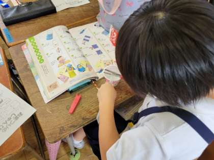 さて、先日ホームページにあげましたおもちゃづくりの続報です。計画書をもとに、足りない材料を用意したり、どうすればよりよくなるかを工夫したりしながら作り上げていきます。教科書を参考に、みんなのアレンジが足されていて、とてもいい感じです!