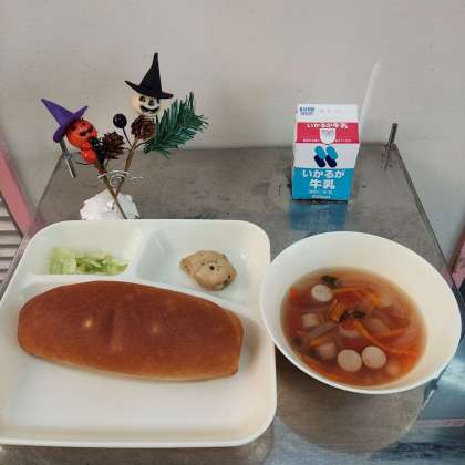 鶏肉の香草焼き、ウインナーとてぼ豆のスープ、キャベツのガーリックソテー