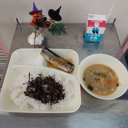 さんまのみぞれかけ、みそ汁、牛ひじきそぼろ