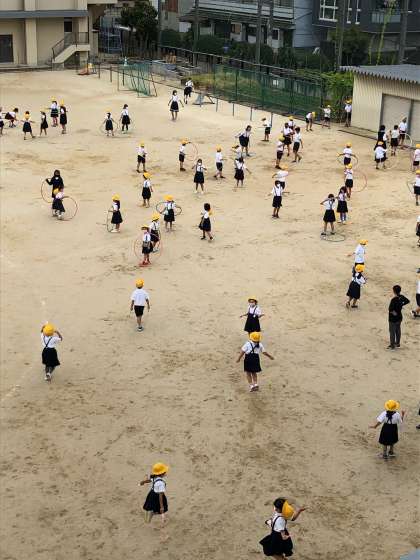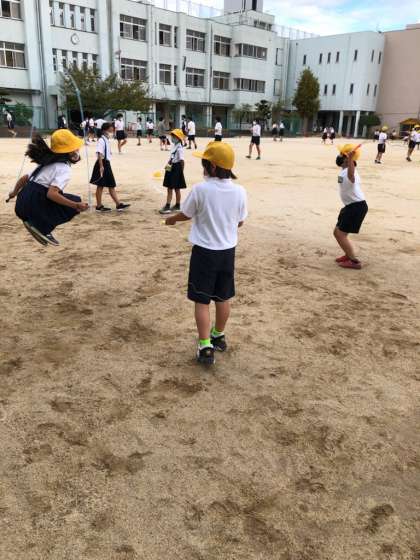 3年生は昼休みに、フラフープやなわとびに挑戦しました。黒帯、達人、名人を目指してがんばっています。