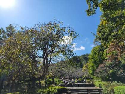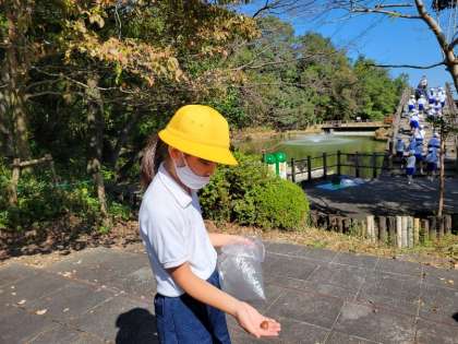 公園の中で、秋見つけをしています。