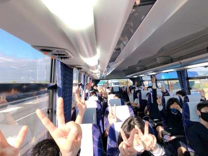 バスのなか、楽しんでます。