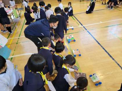 1年生のみなさんを招待し、自分たちで工夫して作ったおもちゃを遊んでもらいました。