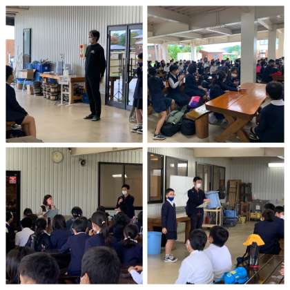 子どもたちの興奮が過ぎるので、クールダウンさせながら次の避難訓練に取りかかります。