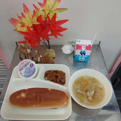 豚肉のデミグラスソース、スープ、ぶどうゼリー