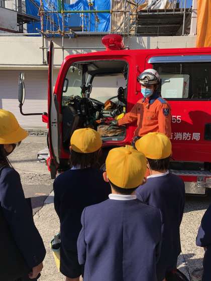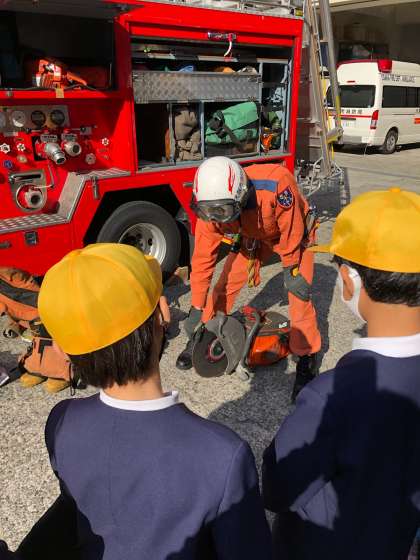 救助車についての説明を聞いています。