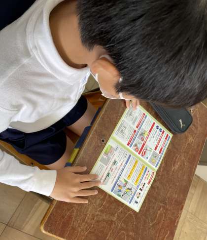横断歩道の通り方や左側通行であることをおさえ、安全に乗る意識を深めました。