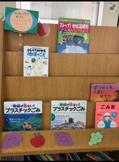 図書室の入り口横にある本棚に、「地球の環境についての本」を集めてみました。