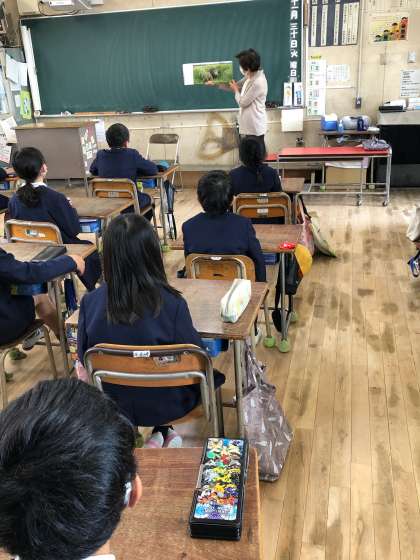 東住吉図書館から、読み聞かせボランティア「おはなしたまてばこ」さんが来てくださり、各学級で絵本の読み聞かせをしてくださいました。