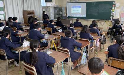 スマートフォンなどによる個人情報の扱いや気をつけることなどについて、Teamsでオンライン授業を行いました。ゲストティーチャーの話をよく聞き、いくつかの事例を動画やクイズで見て学びました。