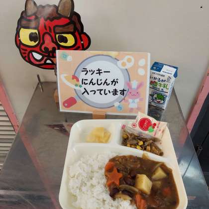 牛肉と金時豆のカレーライス、ごぼうサラダ、パインアップル(カット缶)