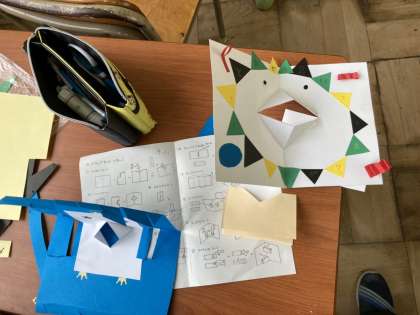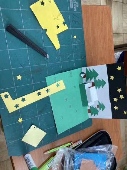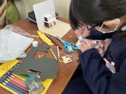 図画工作科ではポップアップカードを作っています。自分が感謝の気持ちを伝えたい人に向けて、工夫して作っています。素敵な作品ができています!!