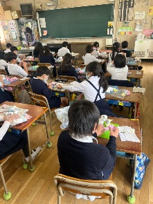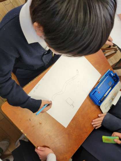 設計図を考えたり、着色したり、教えあったり…1年間、二年生で勉強してきたことをたくさん使って作品を作り上げていきます。