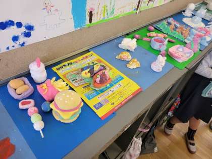 みんなそれぞれ、工夫を凝らした作品を作っています。なぜか蛇が人気?!かわいい動物や、リアルなハンバーガーなど。子どもたちの思いにあふれた作品です。持ち帰りましたら、ぜひお話の種にしてあげてください。
