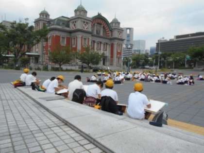 お弁当をもって、中之島まで出向き、中央公会堂を描きました。