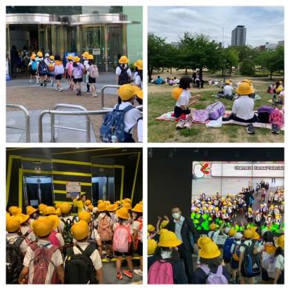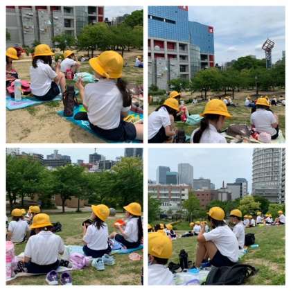 キッズプラザで様々な体験をした後、広場でお弁当やおやつを食べました。