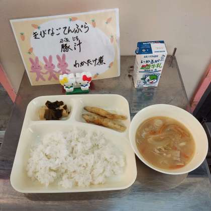 きびなごてんぷら、豚汁、わかたけ煮