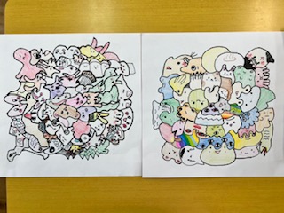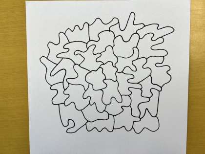 真ん中に一つ形を描いて、どんどん線をつなげて新しい形を画用紙いっぱいに描きました。