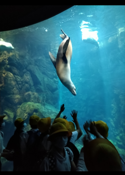 たくさんの海の生き物を見ることができました。「この魚はなんだー?」「かわいいー。」「大きい。」など、感想を言いながら観察していました。