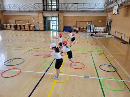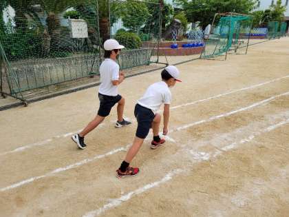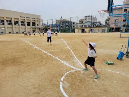 スタートの姿勢や、投げるときの方向、立ち幅跳びの体の使い方など、子どもたちはひとつひとつ丁寧に確認していました。