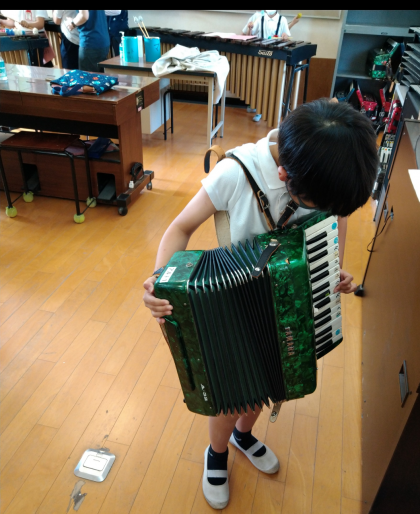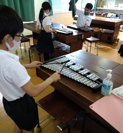 いろいろな楽器を使って、合奏の練習をしています。初めて触る楽器もありますが、