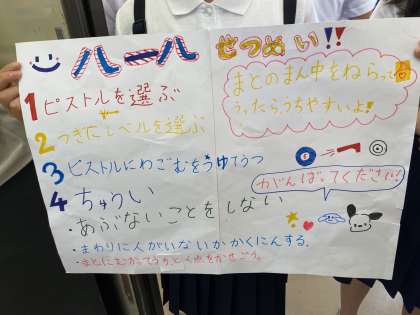 高学年が低学年の弾のセットを手伝うなどして、たくさん撃っていました。