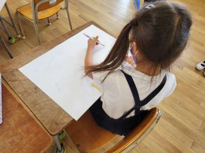 さて、7月に入り、図工の作品も1学期最後の作品です。作品展でも掲示する予定にしていますので、写真は引きぎみで撮影させていただいてます!