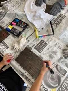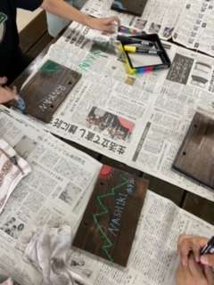 焼き板をピカピカに磨いたら、次は絵を描いていきます?