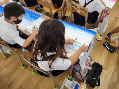 さて、図画工作科の授業では、作品展に向けて、思いのこもった作品を作っています。