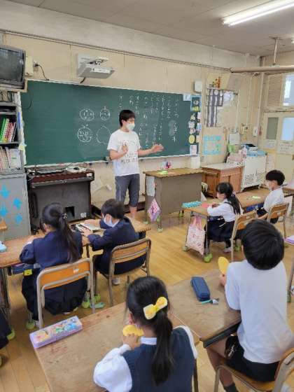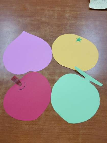 【ふわふわことば】の実がなる木です。以前学習した、「うれしくなることばをあつめよう」で出てきた、心が暖かくなることばを書いてみんなで貼りました。