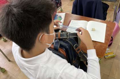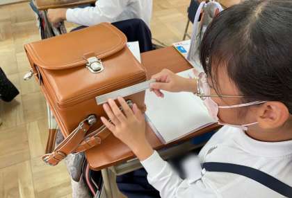 しおりをよく見て持ち物を確認し、金曜日に配布しましたリボンや名前カードなども忘れずに財布へ入れ、カバンにも結びましょう。