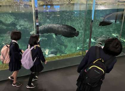 自分たちで探索しながら様々な魚を観察しています。