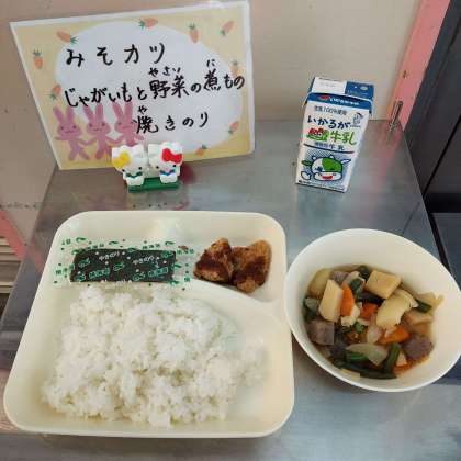 みそカツ、じゃがいもと野菜の煮もの、焼きのり
