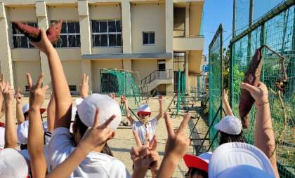 苗の頃から観察してきたサツマイモ。枯れかけたとき、青々と葉が生い茂ったとき、虫に食べられまくっていたとき、バッタたちの住みかになっていたとき。いろんな姿を私たちに勉強させてくれました。