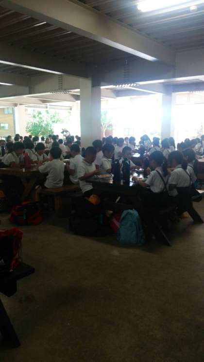 目立った混雑もなく、予定より少し早めに宿舎に到着しました。開舎式を終え、昼食です。