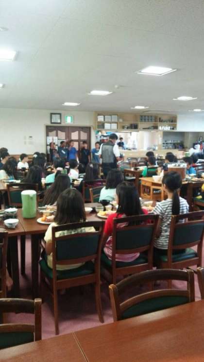 1日目の夕食の様子です。しっかり食べて夜の活動もがんばります。
