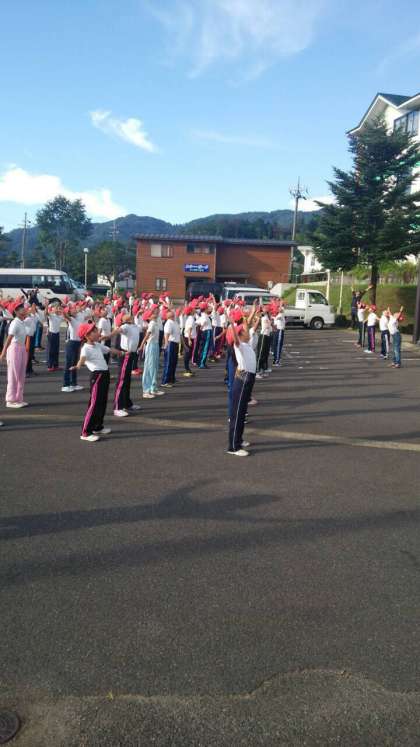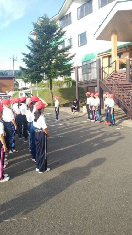 朝の集いが始まりました。今日も青空のもと元気に活動できそうです。しっかり体操をして、身体を起こしましょう。